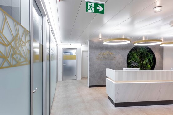 Die neue Praxis vereint Funktionalität mit einem hohen ästhetischen Anspruch und bietet den Patienten ein angenehmes Ambiente, das Vertrauen schafft und Wohlbefinden fördert. Die sorgfältige Auswahl der Materialien sowie die einzigartige Bepflanzung tragen wesentlich zur besonderen Atmosphäre bei.